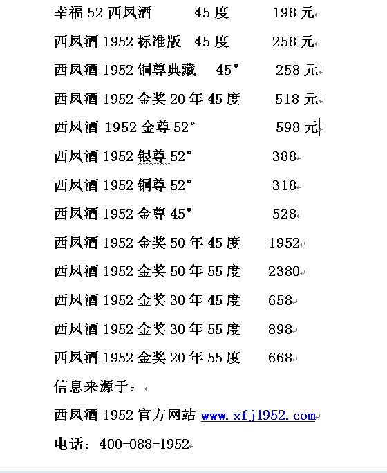 答:这是您想要的西凤酒1952系列所有的西凤酒价格表和图片一览表:如有任何问题可以联系西凤酒1952营销总公司陕西同尊品牌运营有限公司400-088-1952